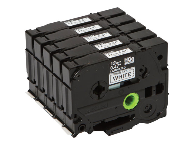 Brother HGE-231V5 - Svart på vitt - Rulle (1,2 cm x 8 m) 5 kassett(er) bandlaminat - för P-Touch PT-9500pc, PT-9800PCN; P-Touch R RL-700S