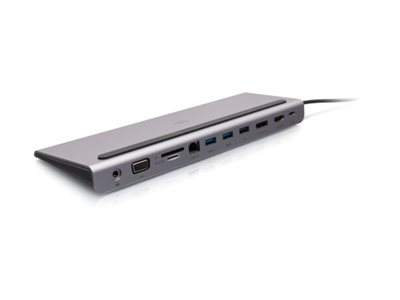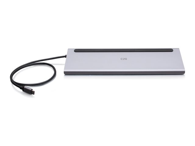 C2G USB-C 10-in-1 Triple Display Docking Station with HDMI, DisplayPort, VGA, Ethernet, USB, SD Card Reader, 3.5mm Audio and Power Delivery up to 100W - 4K 30Hz - Dockningsstation - USB-C - HDMI, DP, VGA - 1GbE
