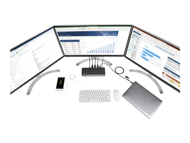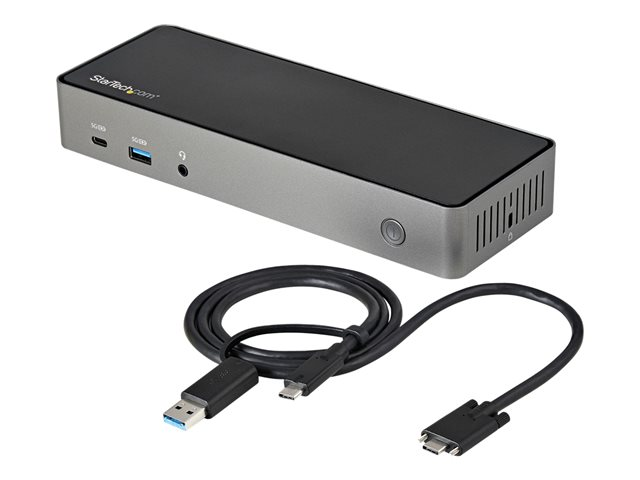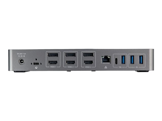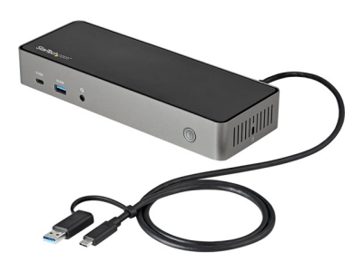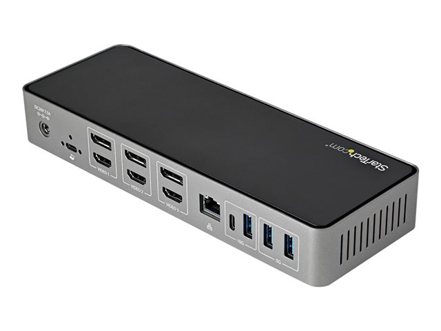 StarTech.com USB-C- och USB-A-dockningsstation - Universal hybriddockningsstation för trippla bildskärmar, DisplayPort och HDMI 4K 60 Hz - 85 W strömförsörjning, 6x USB-hubb, GbE, Ljud - USB 3.1 Gen. 2, 10 Gbit/sek - Dockningsstation - USB-C - 3 x HDMI, 3 x DP - 1GbE - 85 Watt