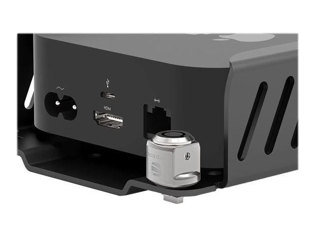 Compulocks Apple TV Security Mount (4th, 4k 1-2nd Gen) (2018-2021) with Cable Lock - Monteringssats (säkerhetshållare, kabellås, låshuvudenhet) - Ventilerad - för mediabox - låsbar - höggradig aluminium - monteringsgränssnitt: 75 x 75 mm - för Apple TV 4K (1st gen, 2nd gen), HD (3rd gen, 4th gen)