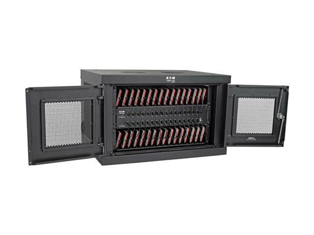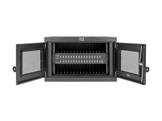 Eaton Tripp Lite Series 32-Device USB Charging Station Cabinet with Sync for Smartphones, Wall Mount and Desktop Options, 230V, BS1363 to C13 Plug, Black - Laddare för flera enheter skåp - med kretsbrytare - på bord, väggmontering - svart