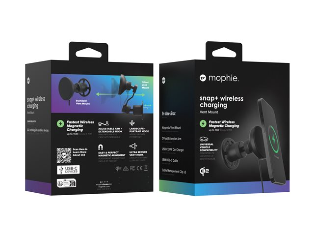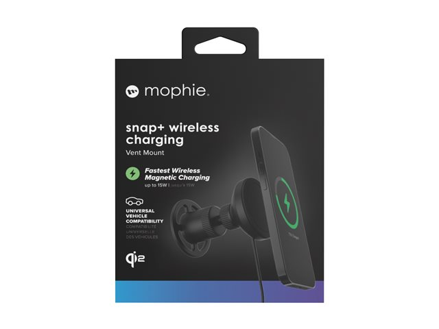mophie snap+ - Trådlös laddningshållare för bil - magnetiskt, ventilfäste + växelströmsadapter - 15 Watt