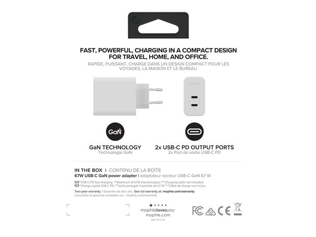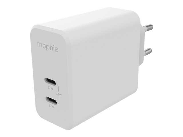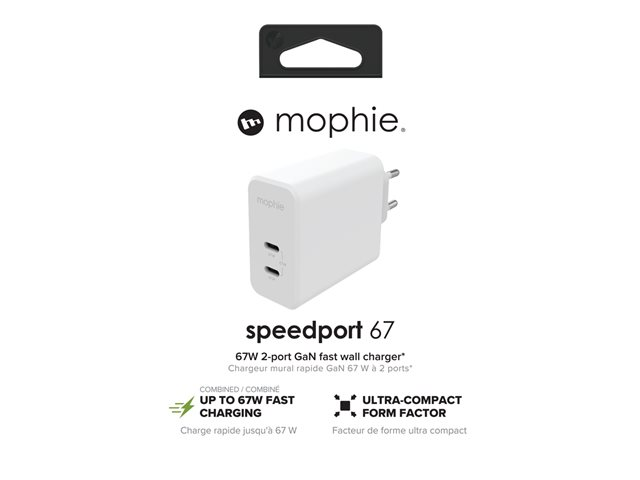 mophie speedport 67 - Strömadapter - 67 Watt - PD, Fast Charge - 2 utdatakontakter (USB-C) - vit - Europa